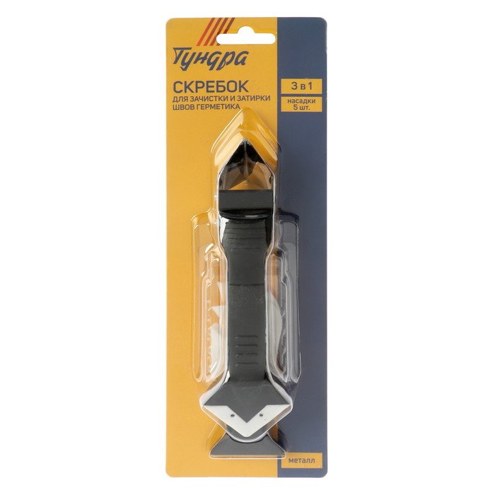 Скребок-шпатель для удаления и выравнивания герметика ТУНДРА, металл, 3 в 1, 5 насадок — Характеристики