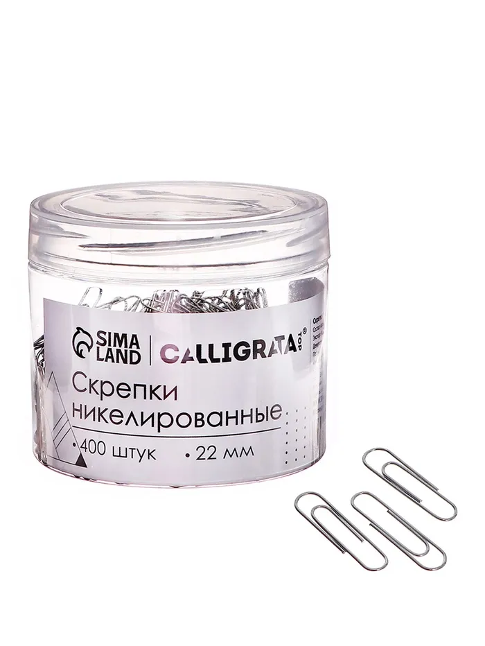Скрепки 22 мм никелированные в пластиковой тубе 400 штук — Характеристики