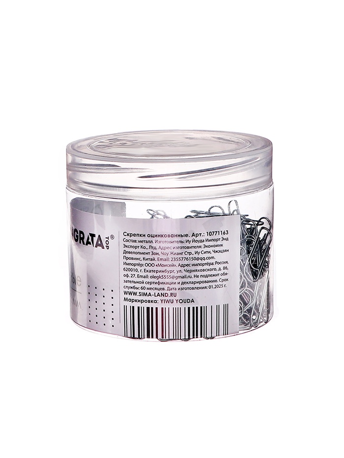 Скрепки 22 мм оцинкованные в пластиковой тубе 400 штук — Характеристики