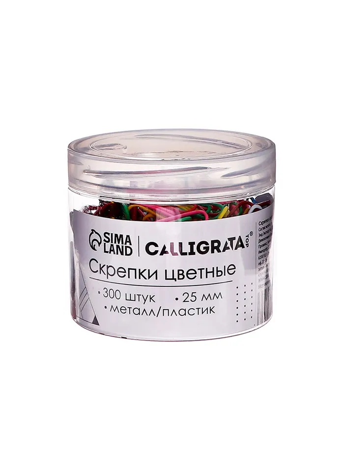 Скрепки 25 мм цветные в пластиковой тубе 300 штук — Характеристики
