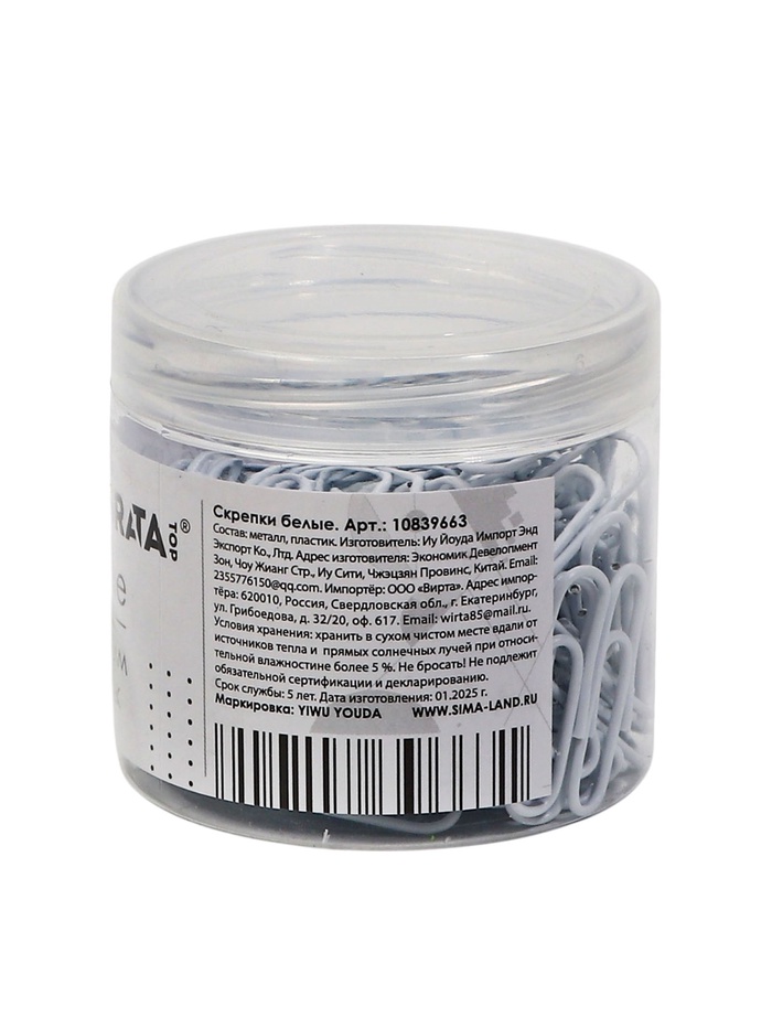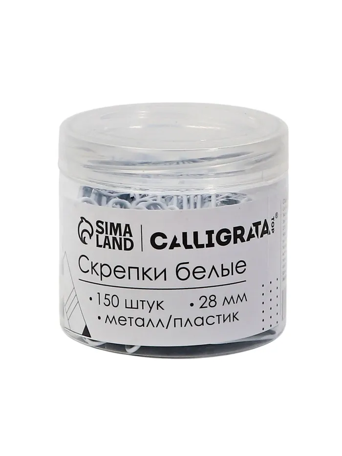 Скрепки 28 мм белые в пластиковой тубе 150 штук, TOP Calligrata — Характеристики
