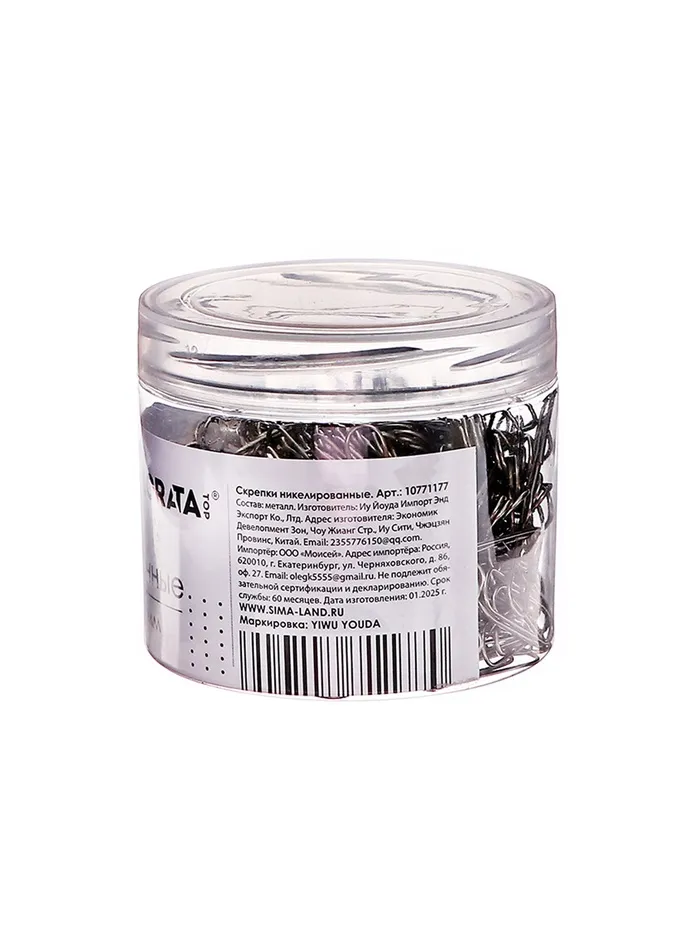 Эти скрепки станут вашим надёжным помощником в порядке на рабочем месте. Компактная упаковка удобна для хранения и транспортировки, а высокая прочность обеспечивает сохранность документов. Сделайте рабочие моменты более функциональными и упорядоченными с помощью этих универсальных канцелярских инструментов!