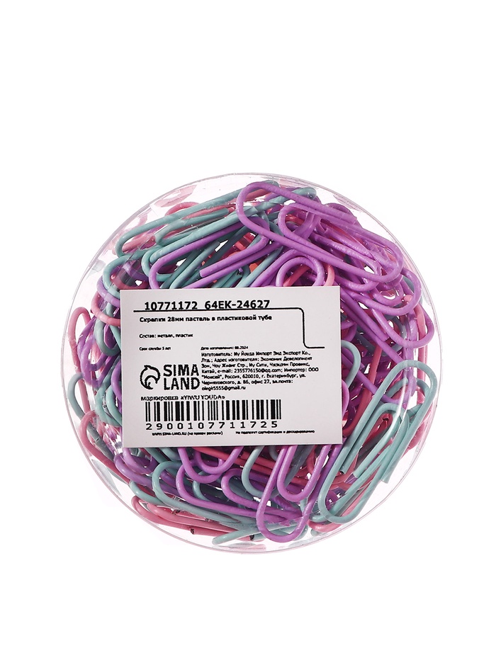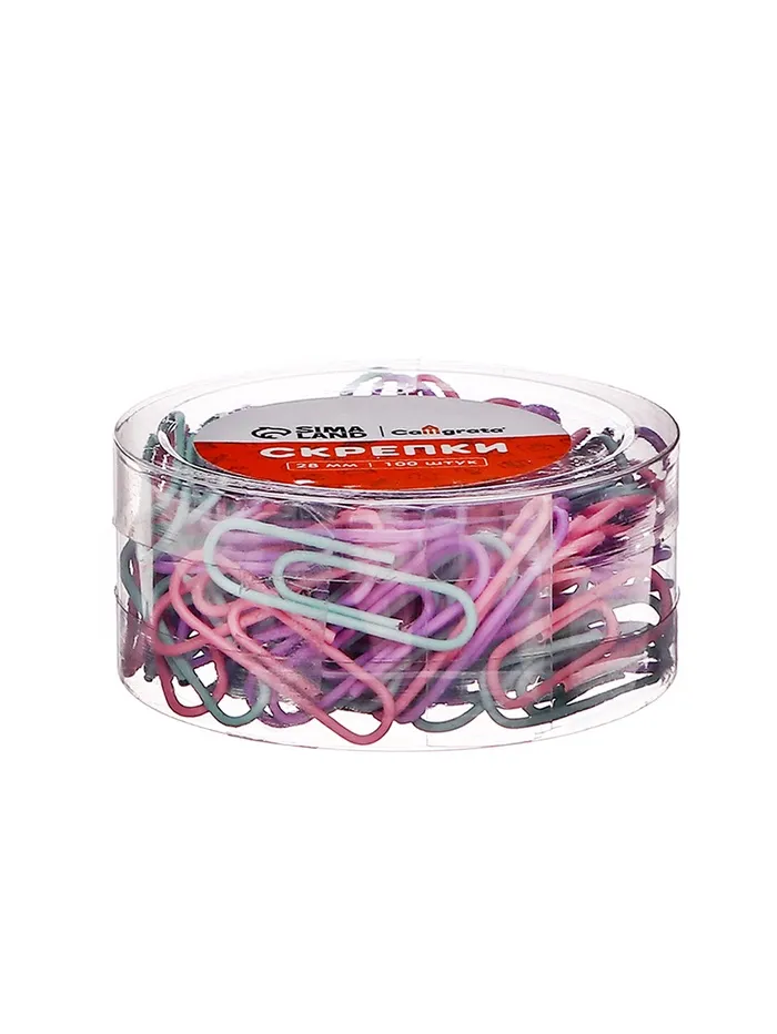 Скрепки 28 мм пастель в пластиковой тубе 100 штук — Характеристики