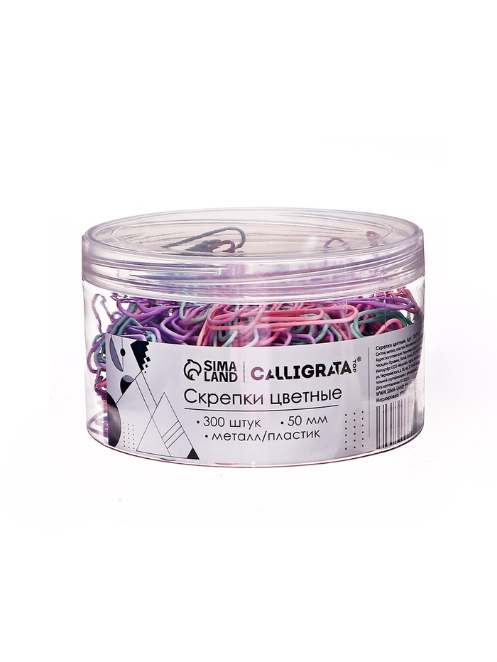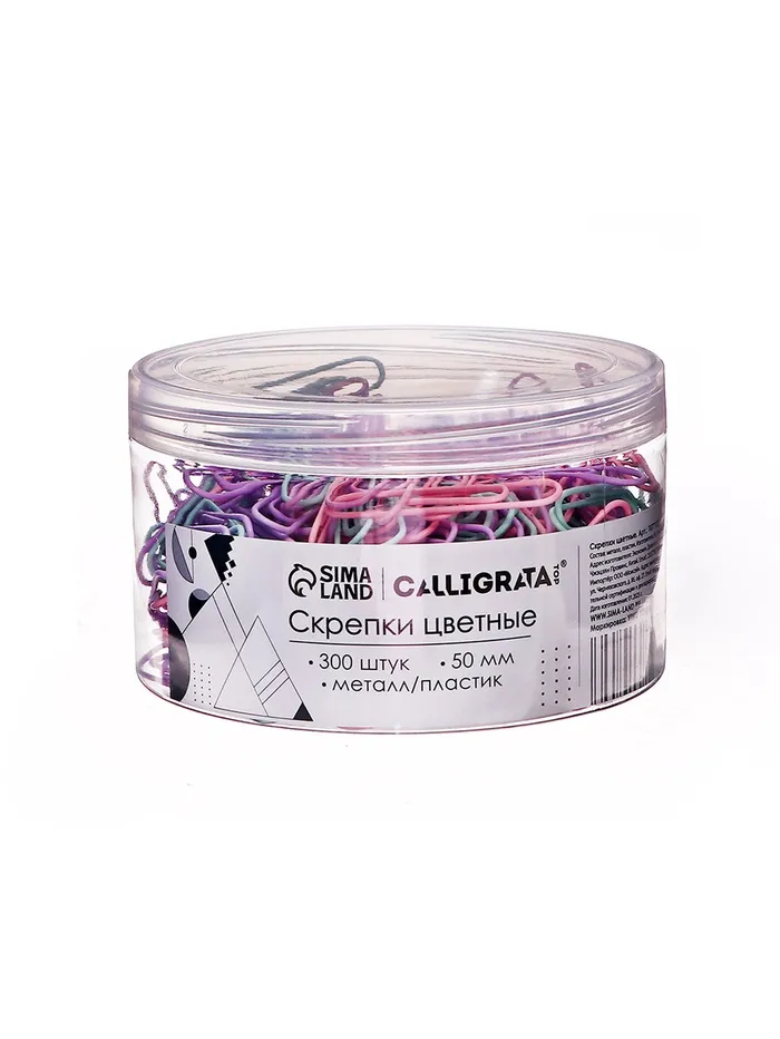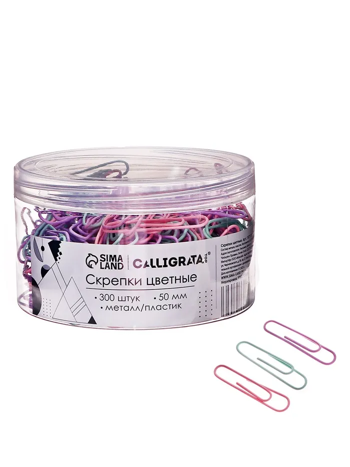 Скрепки 50 мм пастель в пластиковой тубе 300 штук — Характеристики