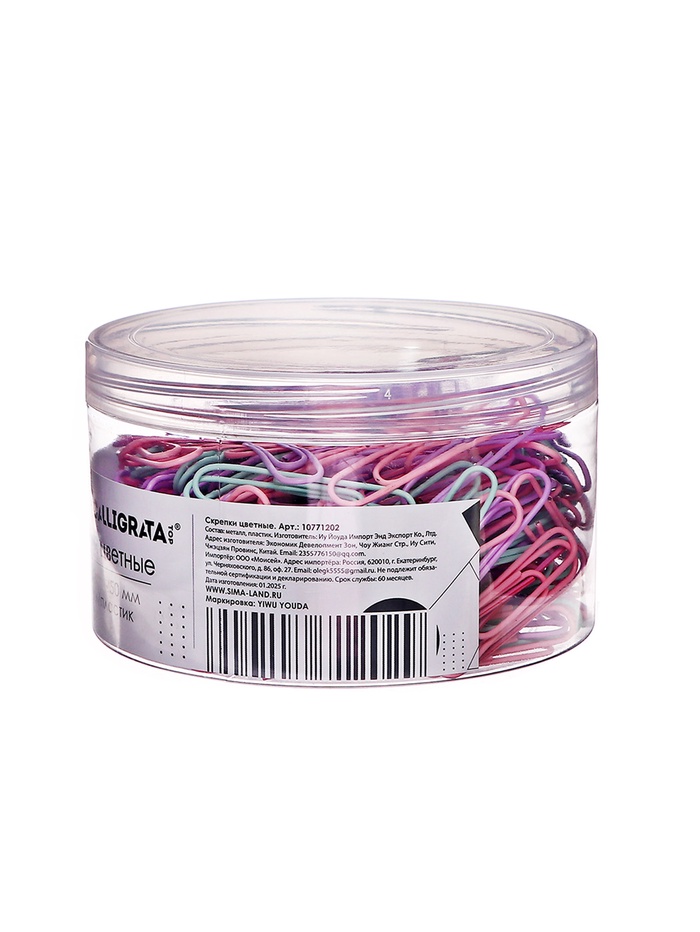Легкие, многоцветные скрепки в пластиковой банке - ваш незаменимый помощник в офисе и дома. Они не только помогут организовать документы и заметки, но и добавят яркости и света в вашу рутиную работу. Особая пластиковая оболочка каждую бумажную скрепку делает удивительно долговечной в использовании.