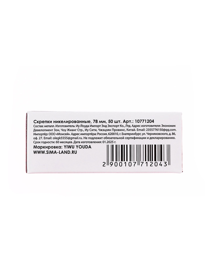 Скрепки 78 мм никелированные в картонной коробке 50 штук — Характеристики