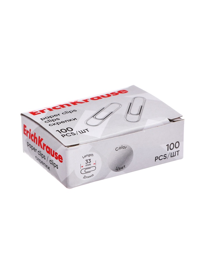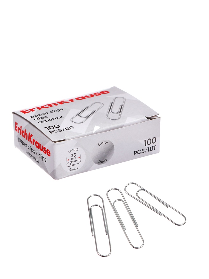 Скрепки канцелярские ErichKrause, 33 мм, 100 шт., оцинкованные, картонная упаковка — Характеристики