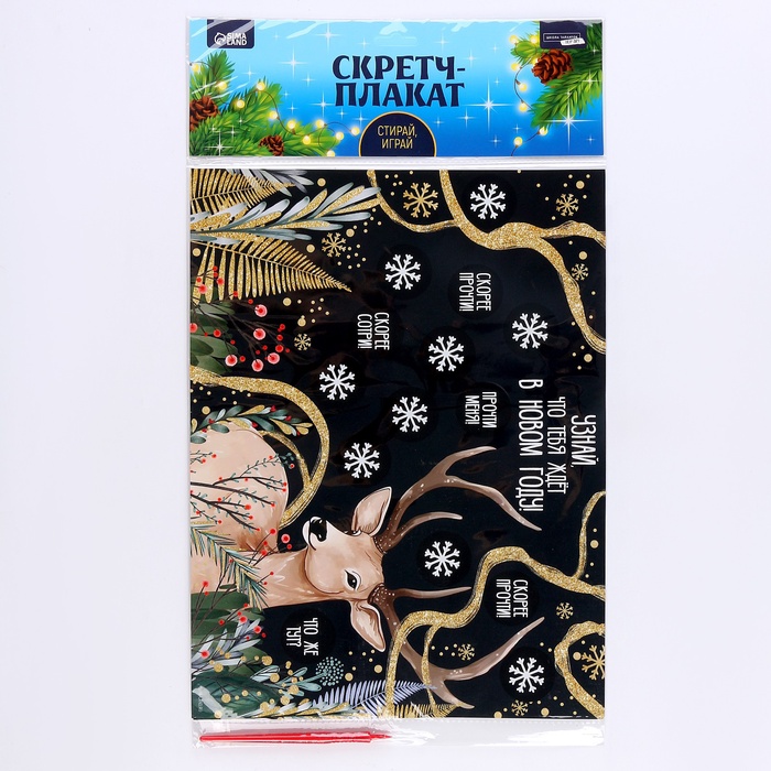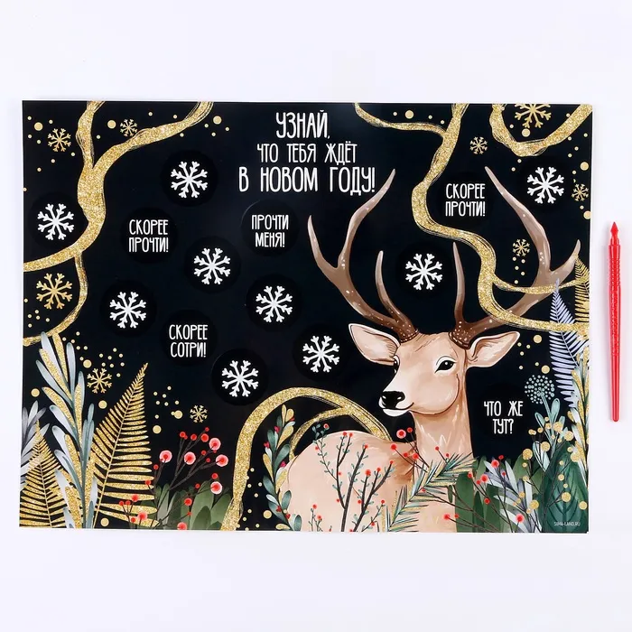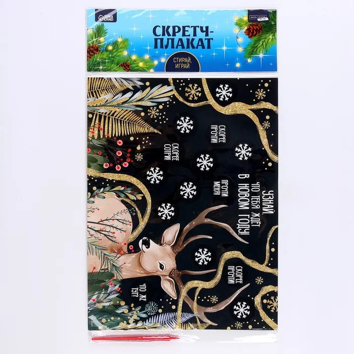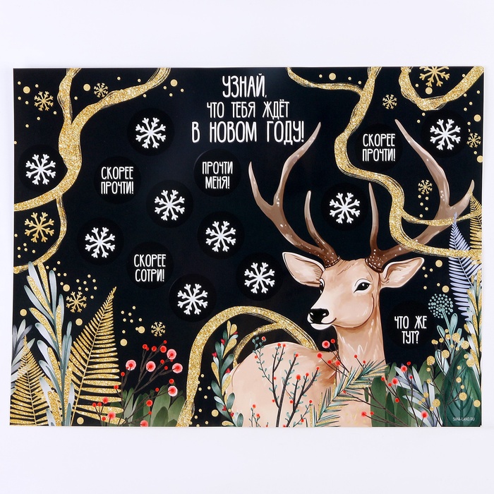 Скретч-плакат на новый год «Чудес в Новом году!» с клапаном, А3