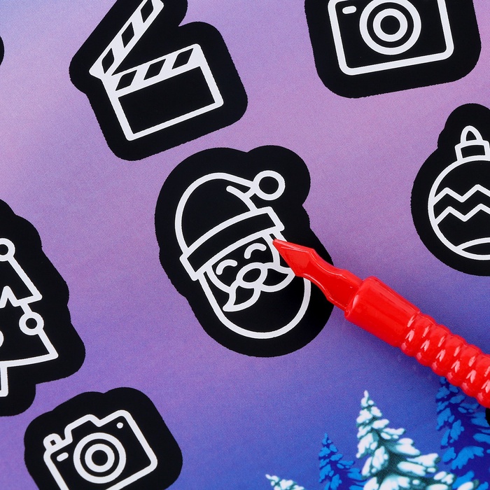 Скретч-плакат на новый год «В гостях у Дедушки Мороза» с клапаном, А3