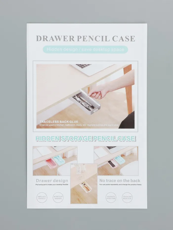 Скрытый потайной ящик, для хранения под стол, 20×9×4 см, белый