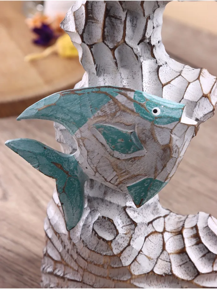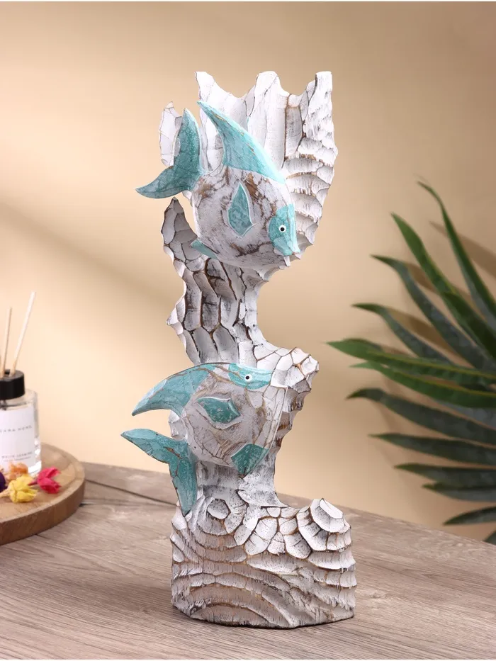 Скульптура «Экзотические рыбы», 15×8×40 см, дерево албезия, бирюзовая — Характеристики