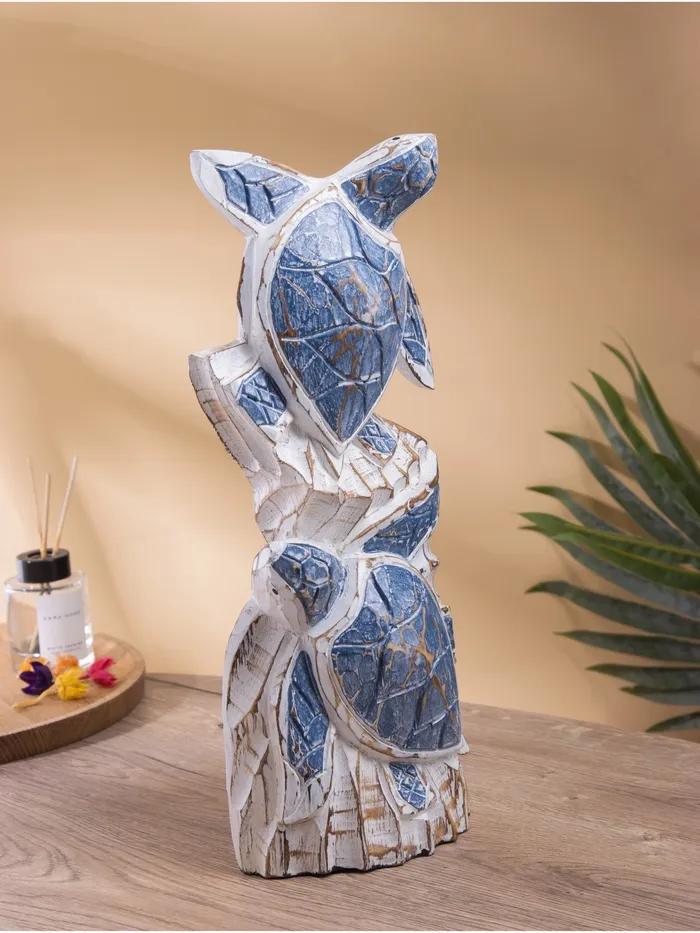 Скульптура "Морские черепахи" дерево Албезия, 15х8х40 см, цв. синий — Характеристики