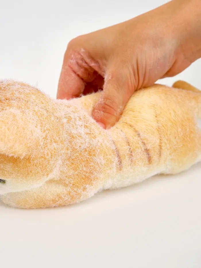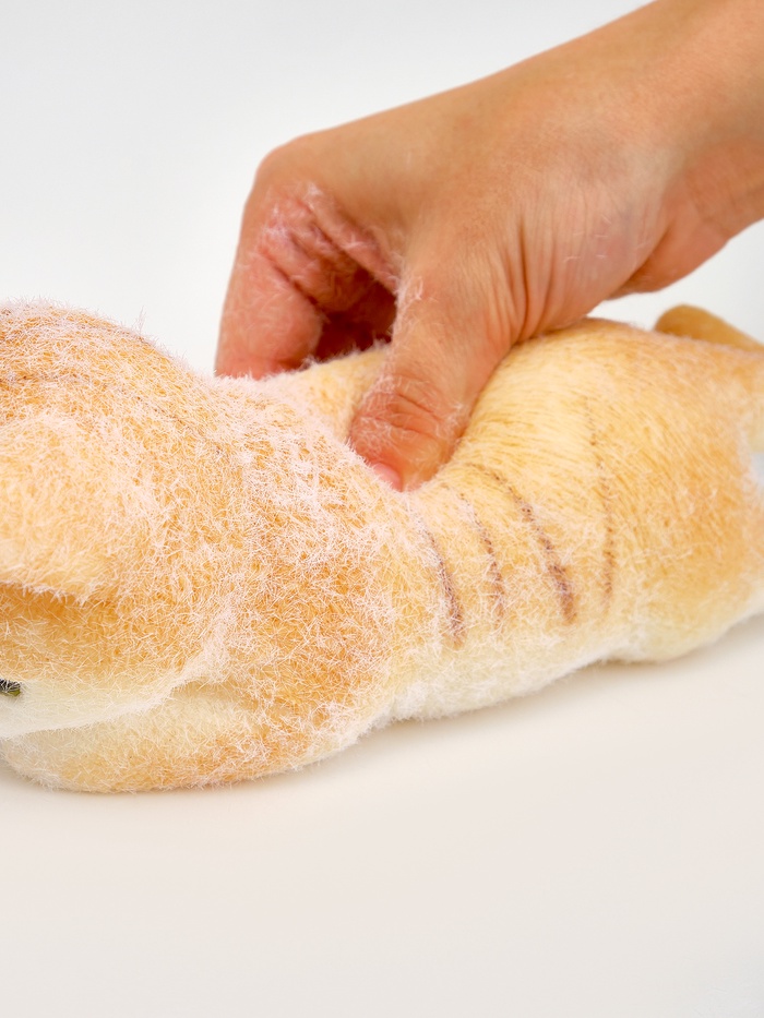 • Большой размер — 20 см — котик удобно лежит в руке, его приятно мять и сжимать.