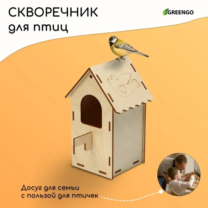 Чтобы собрать кормушку, аккуратно соедините фанерные детали, вставляя их в пазы. Используйте клей для лучшей фиксации. При желании модель можно раскрасить или задекорировать.