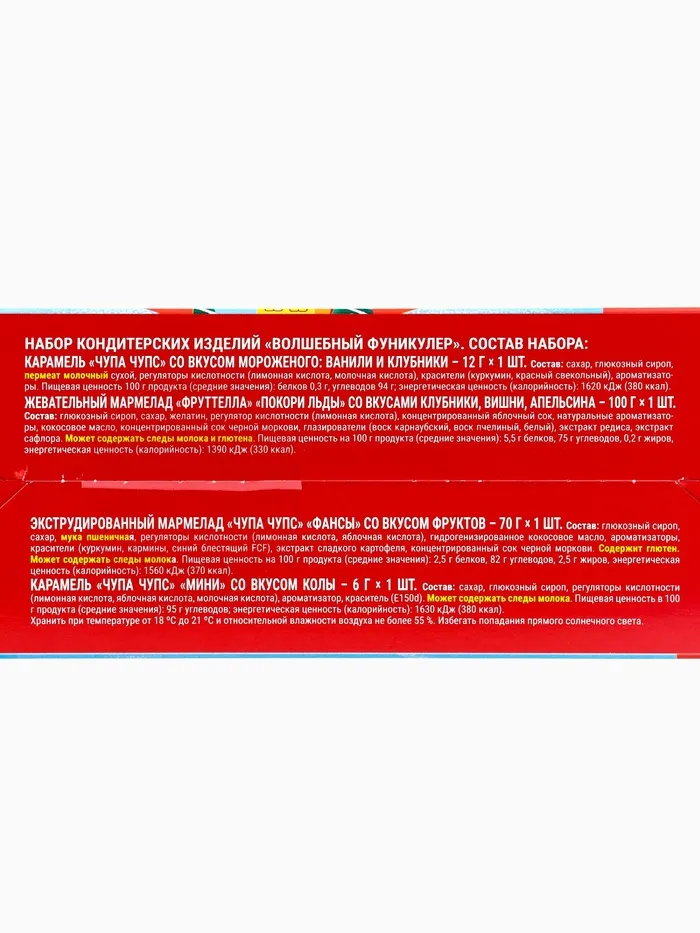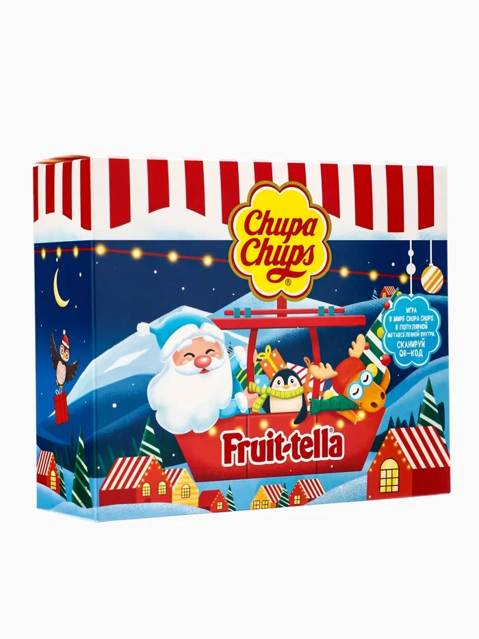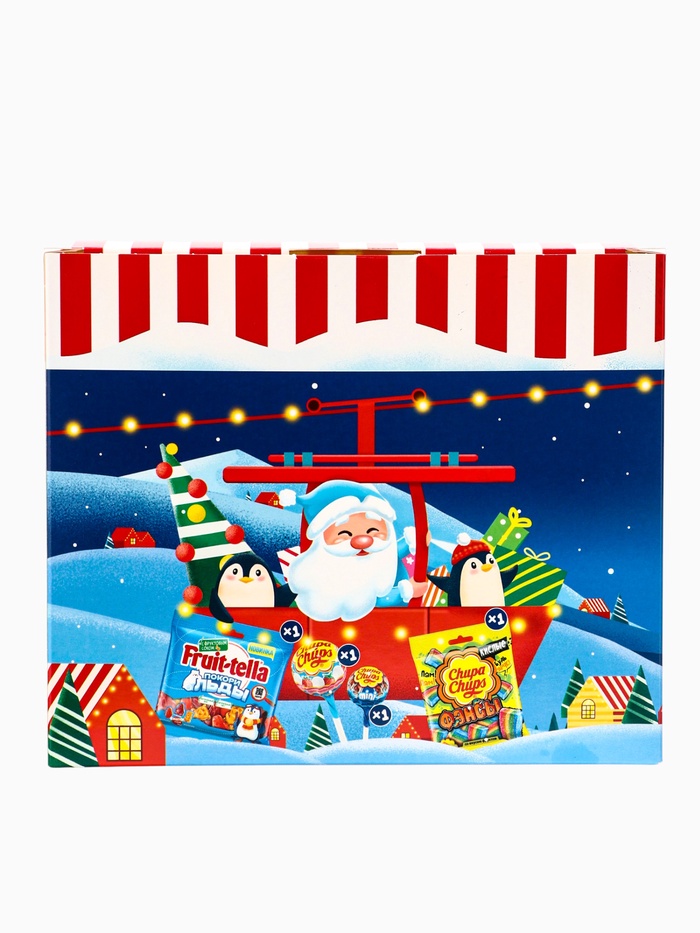 Этот новогодний сладкий подарок — это набор конфет, оформленных в праздничной тематике. В составе — разнообразные вкусы, такие как ваниль, апельсин, кола, мороженое, клубника, вишня и фруктовый микс, что делает его универсальным угощением для любого праздника.