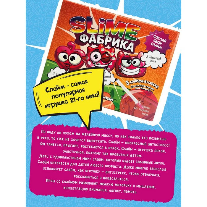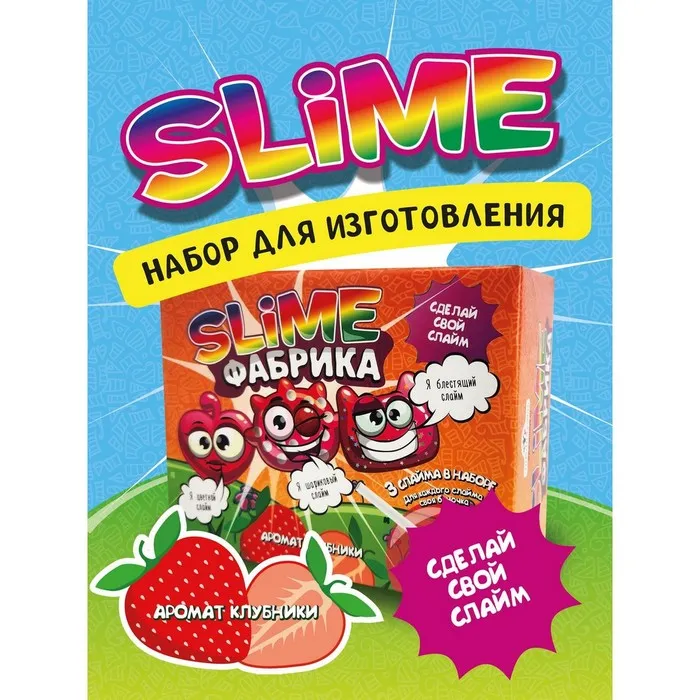 Слайм фабрика «Клубника» — это набор для опытов и экспериментов, который предоставит вам и вашим детям возможность создать, свой индивидуальный слайм лизун.
