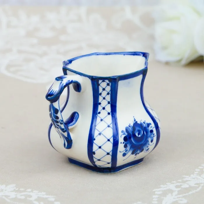 Сливочник "Ларец", гжель, фарфор, 8х8 см