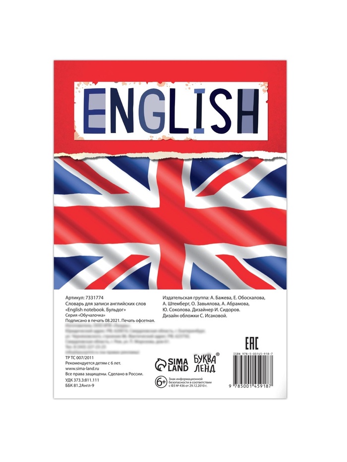 Словарь для записи английских слов English notebook. «Бульдог», 52 стр. — Характеристики