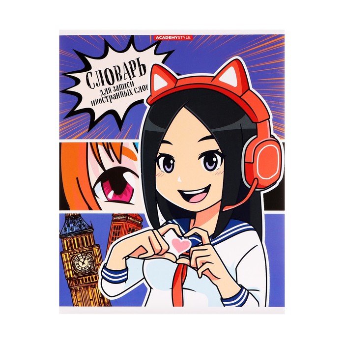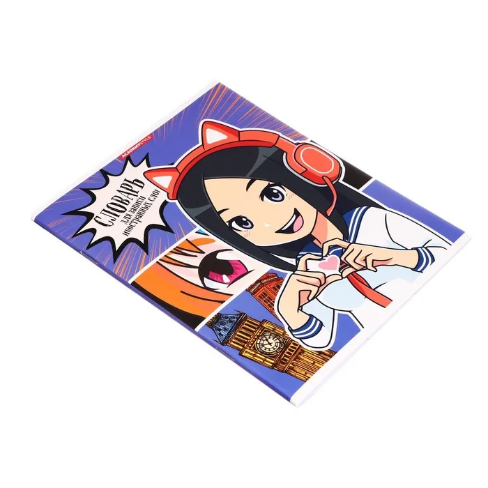 Словарь для записи иностранных слов А5, 48 листов на скрепке "Аниме", обложка мелованный картон, ВД-лак, МИКС — Характеристики