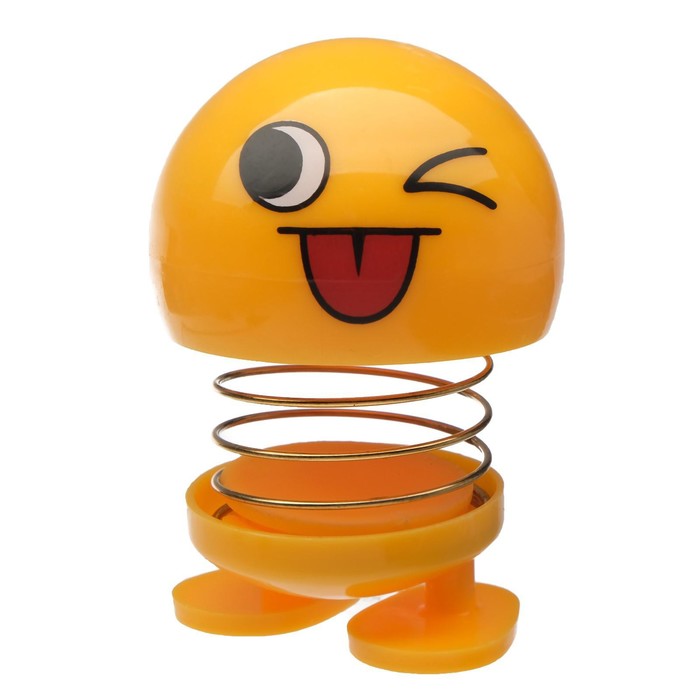 Смайл на пружинке, на панель в авто, подмигивает, желтый