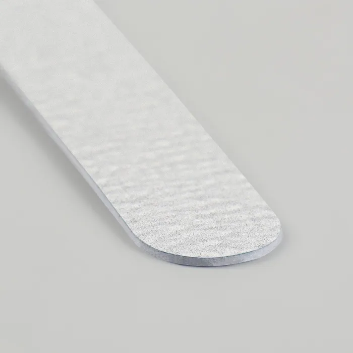 Приклеивать абразив необходимо на сухую простерилизованную металлическую основу, сняв защитную полоску. Благодаря клейкой основе файл не соскользнёт и не помнётся во время работы. Абразив не должен выходить за края металлической основы, чтобы не повредить обрабатываемую поверхность ногтей.