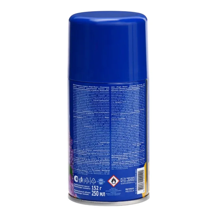 Автоматический освежитель воздуха, сменный блок. Для устранения неприятных запахов, освежения и ароматизации воздуха в жилых и бытовых помещениях, ванных и туалетных комнатах, помещениях для курения. Подходит для большинства автоматических распыляющих устройств. Действует 60 дней при интервале распыления 30 минут.