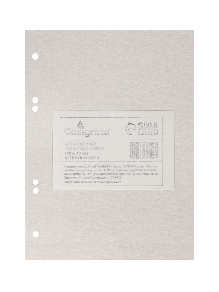 Сменный блок для тетрадей на кольцах А5, 80 листов в клетку, Calligrata, белый 100% — Характеристики