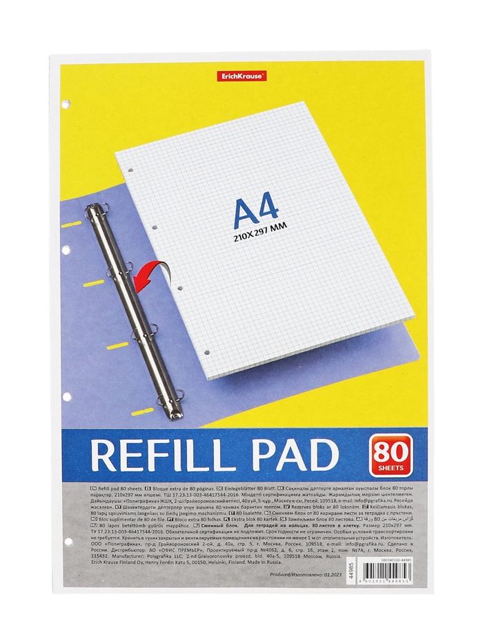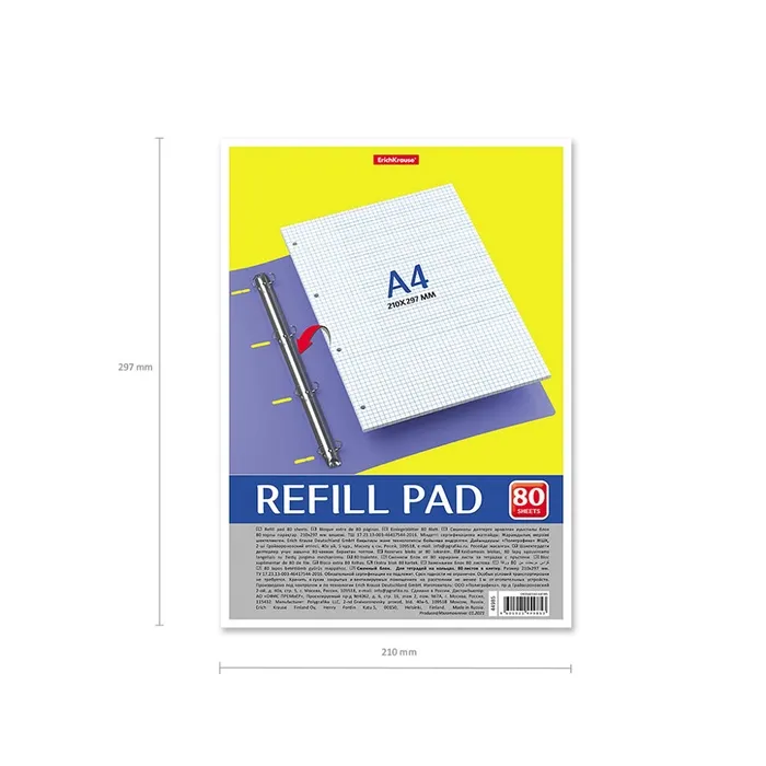Сменный блок для тетради А4, на кольцах, 80 листов в клетку, Erich Krause — Характеристики