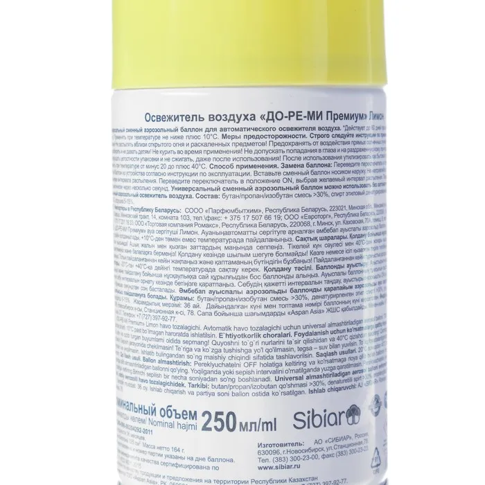 Сменный блок освежитель воздуха До-Ре-Ми Премиум "Лимон", 250 мл — Характеристики
