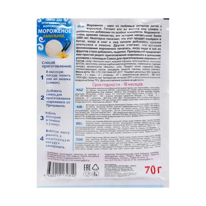 Эта смесь отличается классическим и незабываемым вкусом натуральной ванили, который подарит вам ощущение настоящего наслаждения. Вам не нужно быть профессиональным кондитером — просто следуйте простым инструкциям, чтобы получить гладкое и ароматное мороженое, которое можно подавать как самостоятельный десерт или использовать в качестве добавки к другим блюдам.
