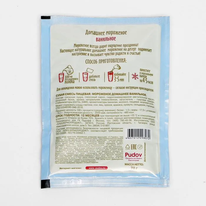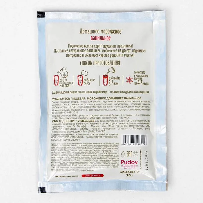 Состав: сахарная пудра, глюкозный сироп, гидрогенизированное растительное масло, молочный белок, ваниль натуральная измельченная, загуститель - гуаровая камедь, стабилизаторы (Е472а, Е466), ароматизаторы (ванилин, молоко), пищевая морская соль. Может содержать следы глютена, сои, яиц, орехов, арахиса, кунжута, сельдерея, горчицы.