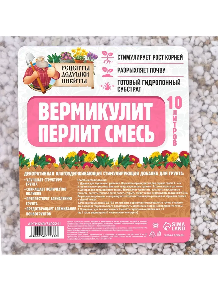 Смесь Вермикулит и Перлит "Рецепты Дедушки Никиты" 10 л. — Характеристики