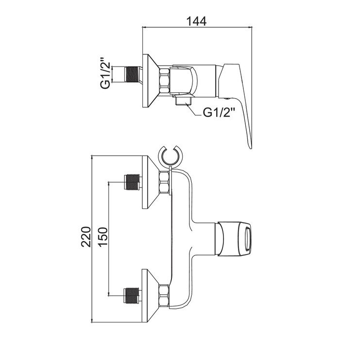 Однорычажный смеситель с гигиеничским душем устанавливается на стену. Длина шланга варьируется в зависимости от положения: в исходном — 40 см, в растянутом — 150 см.
