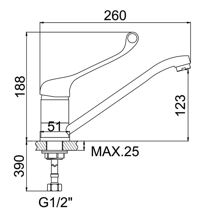 Смеситель для кухни Accoona A4141, с хирургической ручкой, с гайкой, силумин, хром — Характеристики