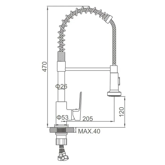 Смеситель для кухни Accoona A44126, однорычажный, гибкий излив, 2 режима, высокий, хром — Характеристики