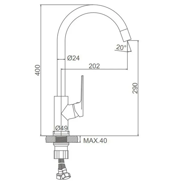 Смеситель для кухни Accoona A4512, однорычажный, с гайкой, хром — Характеристики