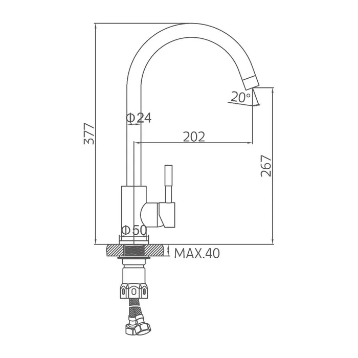 Смеситель для кухни Accoona A4590A-2, однорычажный, с гайкой, сатин — Характеристики