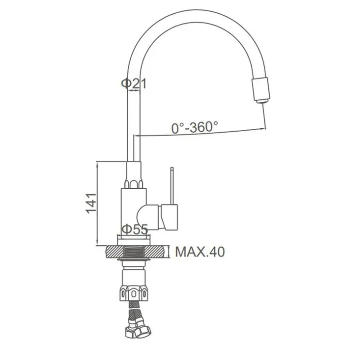 Смеситель для кухни Accoona A48104G, однорычажный, с гайкой, нерж.сталь, белый/сатин — Характеристики