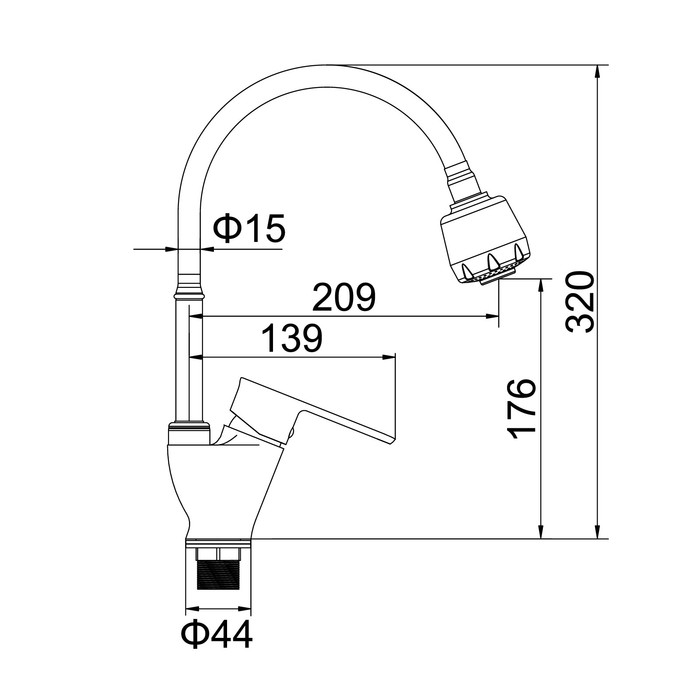 Смеситель для кухни Accoona A4864, однорычажный, гибкий излив, силумин, хром — Характеристики
