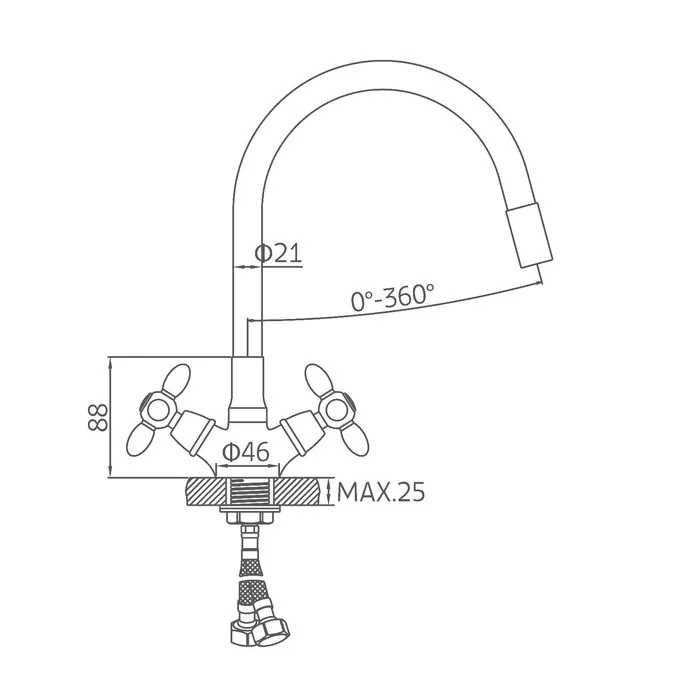 Смеситель для кухни Accoona A4882F-1, двухвентильный, с гибким изливом, черный — Характеристики