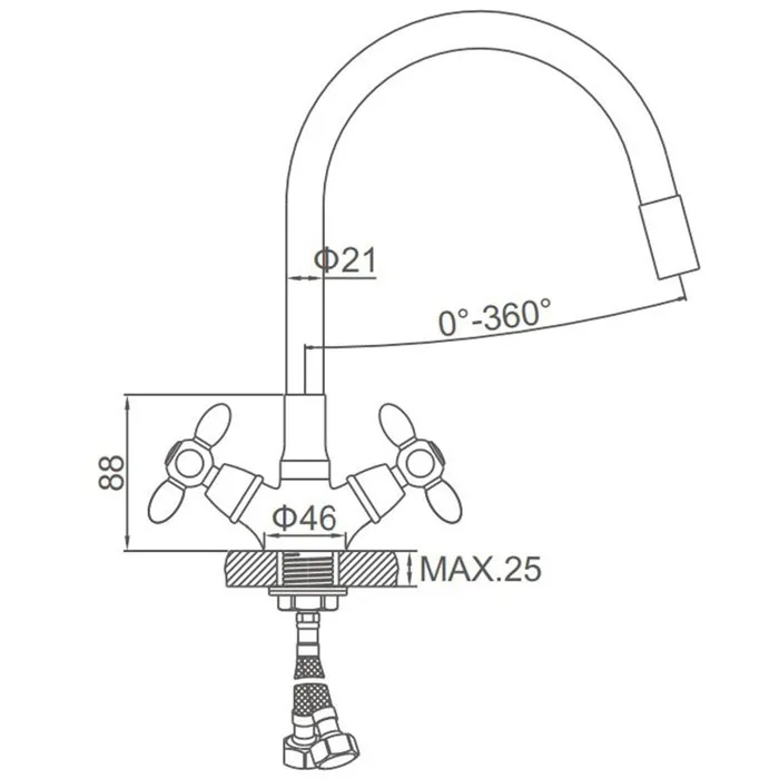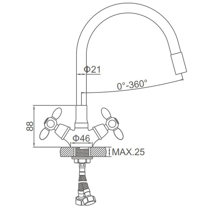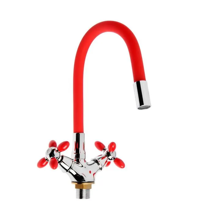 Смеситель для кухни Accoona A4882N-1, двухвентильный, с гибким изливом, красный — Характеристики