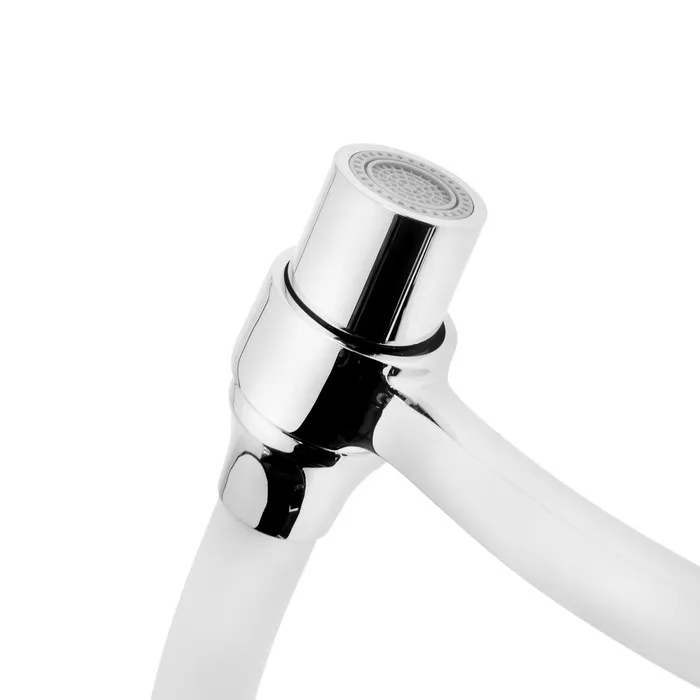 - Гибкий силиконовый излив: Длина 180 мм позволяет легко направлять поток воды. Силикон устойчив к известковому налету — легко очищается.