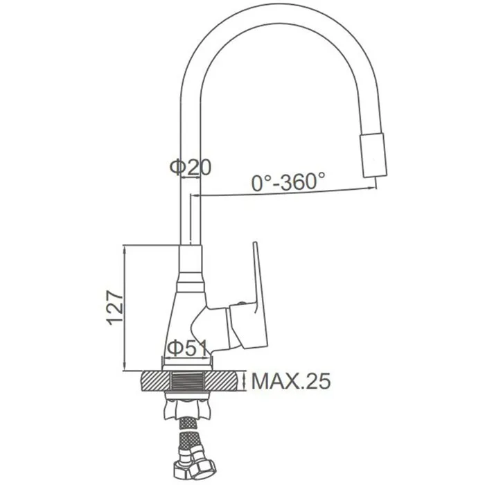 Смеситель для кухни ZEIN Z50151, однорычаж., картридж 35 мм, излив 25 см, без подводки, хром