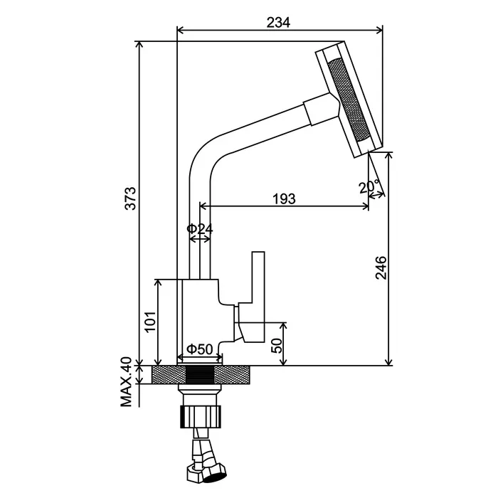 Длина излива, мм: 193