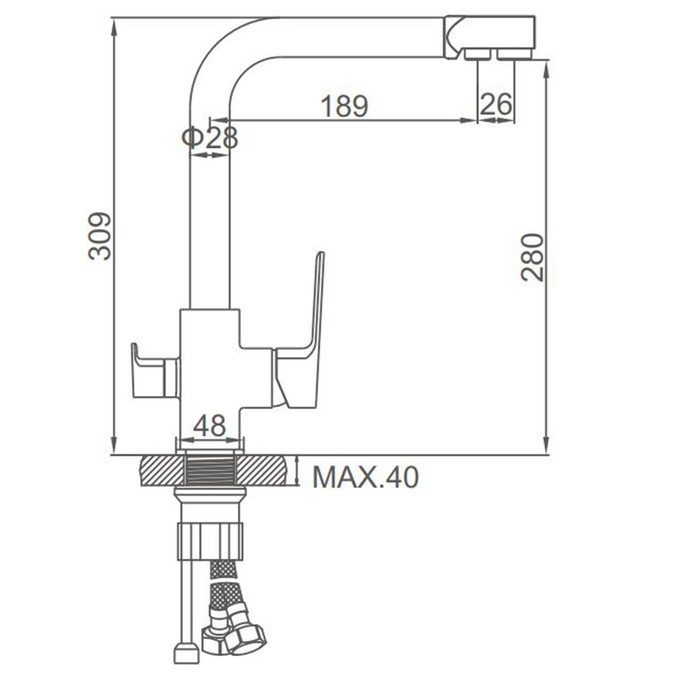 Смеситель для кухни Accoona A51126F, однорычажный, излив 189 мм, выход на питьевую, черный — Характеристики