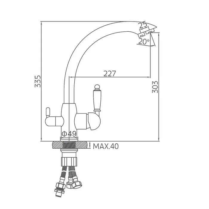 Смеситель для кухни Accoona A5179C-7, с выходом для питьевой воды, латунь, бронза — Характеристики