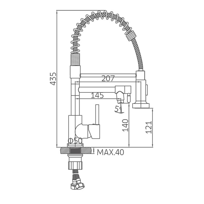 Смеситель для кухни Accoona A5490-7, однорычажный, гибкий излив, хром — Характеристики
