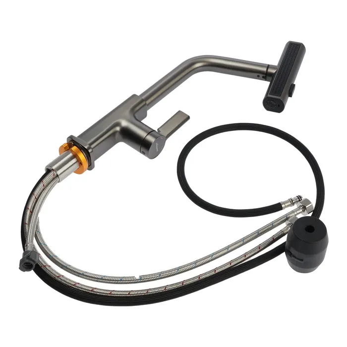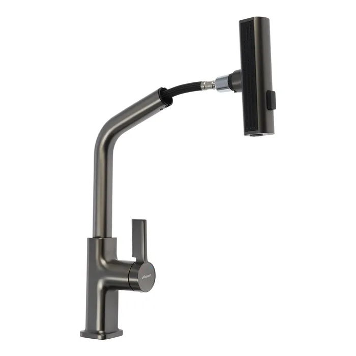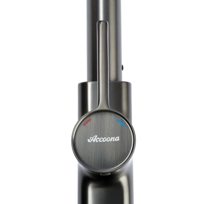 Смеситель для кухни Accoona A5490ST-9, с выдвижной лейкой, латунь, цвет оружейная сталь — Характеристики