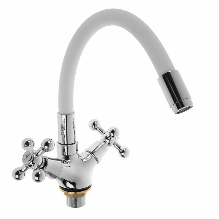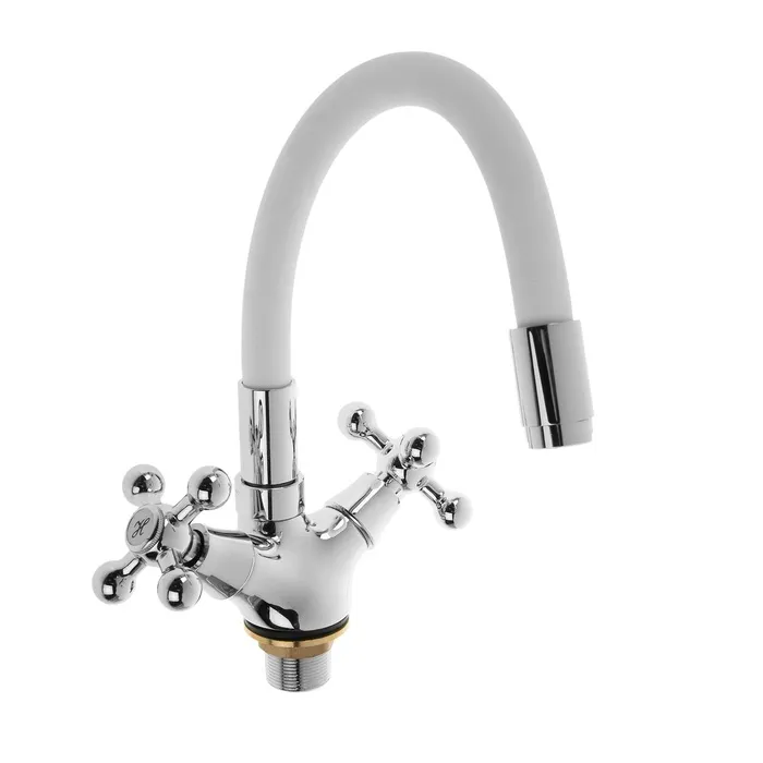 Классика с современной функциональностью! Двухвентильный смеситель Accoona A9871G — сочетание традиционного дизайна и практичности. Белый корпус с хромированными элементами и гибким изливом подойдет для кухонь в стиле ретро, кантри или прованс.