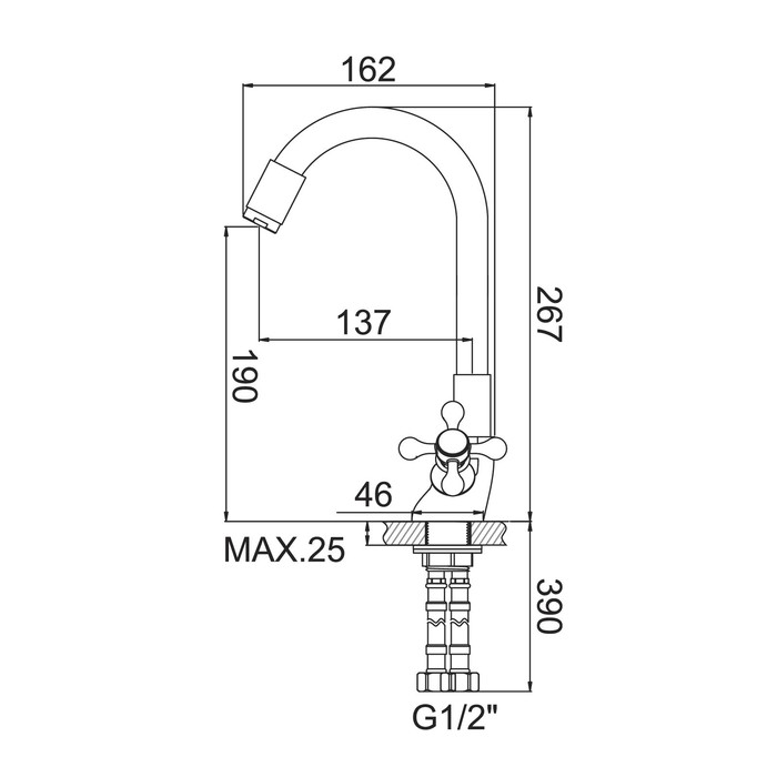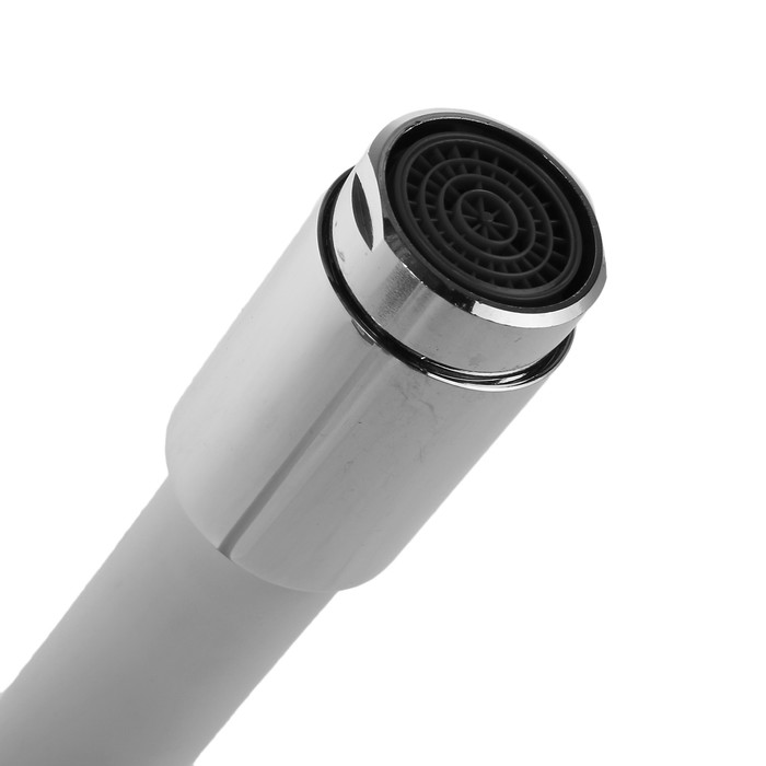 - Гибкий силиконовый излив (162 мм): Легко направляет струю воды в нужную часть раковины. Материал не трескается от перегибов и не покрывается известковым налетом.